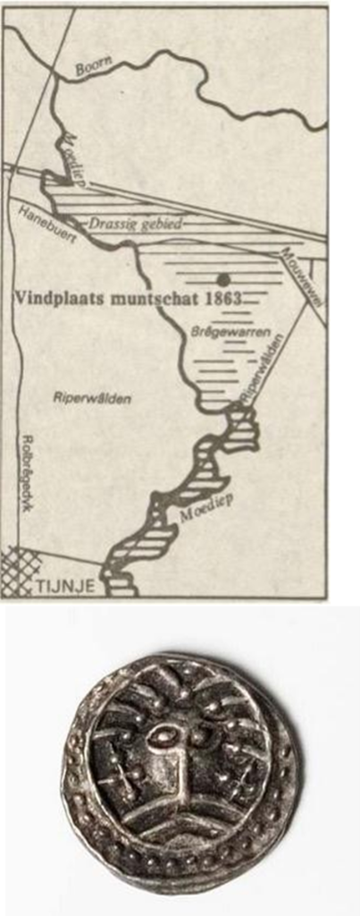 • Sulveren munt by Ureterp , gouden fibula by Mersken/Siegerswoude , swurd by it Koningsdiep .