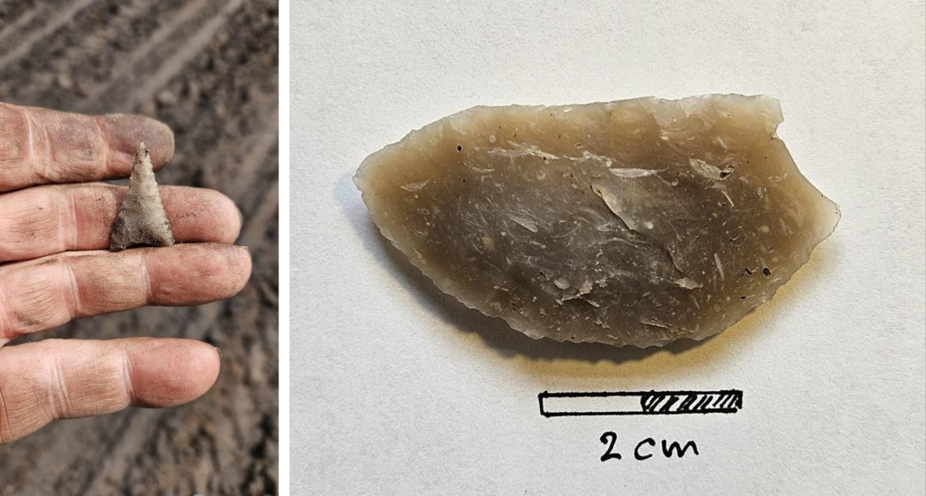 Ofbylding 1: Kearnbile mei tranchet-snijing. Ien kant is fan beide kanten bewurke, de oare kant foar in part bewurke. Perioade: Midden oant Let-Mesolitikum 7.100–4.900 f.Kr. Lokaasje: Siegerswoude. Boarne: databasekolleksje fan it Northern Archaeological Depot. Ofbylding 2: Snijskraper. Perioade: Iere Ahrensburg-kultuer (sawat 10.600 f.Kr. oant sawat 9.800 f.Kr.), Lokaasje: Ureterp. Fûn yn jannewaris 2024 troch amateur-archeolooch Nico B. van der Brug. Foto: R. van der Brug.