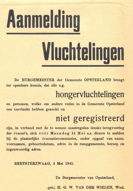Under de Twadde Wrâldoarloch kamen tûzenen evakuëes út Súd- en East-Nederlân yn Fryslân telâne. Ek yn Opsterlân waarden in protte opfongen, faak by gastgesinnen of yn gebouwen as Harinxma State en Lauswolt. Argyfstikken litte sjen hoe't de gemeente en lokale kommisjes de opfang organisearren en hokker útdagingen dêrby spilen.
